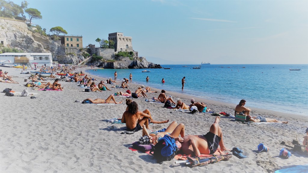 La giornata dei villeggianti cominciava alle otto in punto con l’Ave Maria di Schubert che veniva messa a tutto volume sul bagno di Rafele, il lido Adriana. Le note dolci e melodiose della preghiera arrivavano dappertutto, perfino sulla Turina. C’era poi il pescivendolo che veniva con il suo furgoncino da Cetara e che girava per il paese gridando con voce cantilenante “o pisciaiolo! ‘e pisce frische”. Verso le dieci, i villeggianti cominciavano a scendere in spiaggia e il jukebox del Lido Adriana faceva partire la colonna sonora della giornata al mare con le note delle canzoni del momento: Voce ‘e notte di Peppino di Capri, Riderà di Little Tony, Abbronzatissima e i Vatussi di Sergio Endrigo, Sapore di sale di Gino Paoli, il Cielo in una stanza di Mina e l’immancabile Cuore di Rita Pavone.