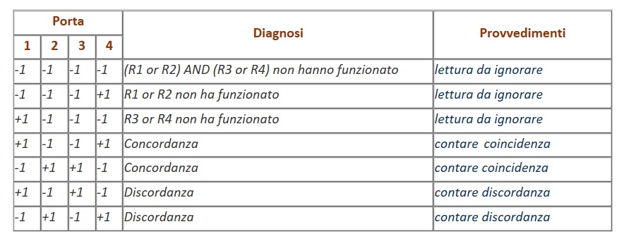 Nella seguente tabella riporto la logica semplificata del conteggio di coincidenze.