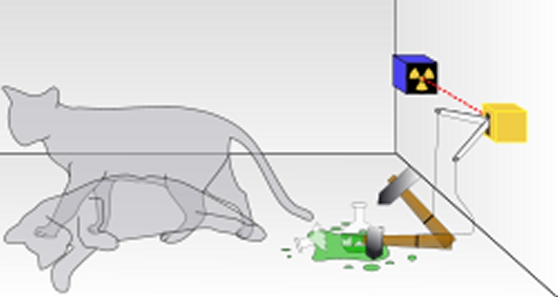 “Si rinchiuda un gatto in una scatola d’acciaio insieme alla seguente macchina infernale (che occorre proteggere dalla possibilità d’essere afferrata direttamente dal gatto): in un contatore Geiger si trova una minuscola porzione di sostanza radioattiva, così poca che nel corso di un’ora forse uno dei suoi atomi si disintegrerà, ma anche, in modo parimenti probabile, nessuno.