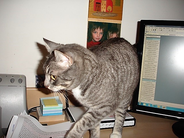 Luna, che non avendo trovato Walter von der Vogelweide sul cornicione è tornata a farmi compagnia, a questo punto fa un ‘miaooooo’ annoiato e si sistema per dormire meglio. Avrà pensato “questo oggi ha deciso di farmi venire il mal di testa … rinuncio a seguirlo … piuttosto mi faccio una dormita”.