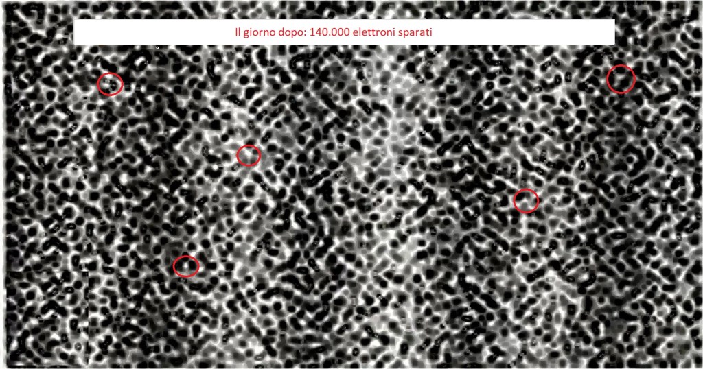 Il giorno dopo, quando sono stati sparati 140.000 elettroni, scatto la seconda foto: sulla lastra si è formata la classica figura d’interferenza!
