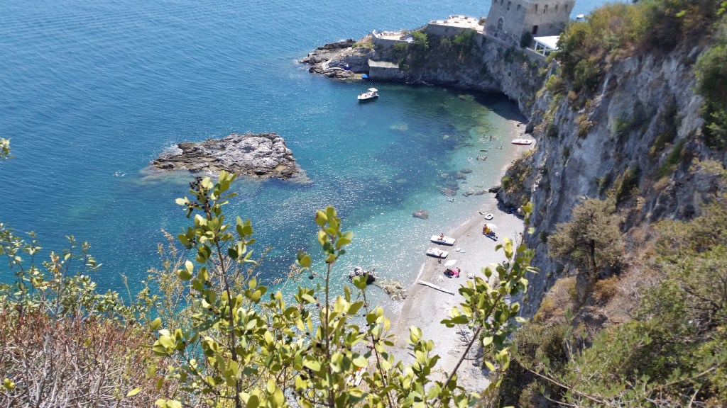 Giù, guardando in basso tra i tronchi di pino, Gennarino comincia a intravedere l’azzurro del mare. E’ scintillante per il riverbero del sole alto di mezzogiorno. Sulla sinistra, nella stretta insenatura tra gli scogli, la piccola spiaggia del fico è deserta. Non c’è nessuno, né sullo stretto arenile, né in mare a fare il bagno.