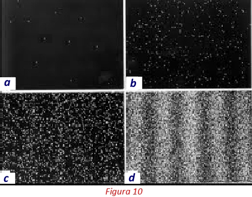 Dopo dieci secondi faccio una prima fotografia. Il punto d’impatto dei dieci elettroni sparati sono ben visibili nella fotografia (figura 10, a ).