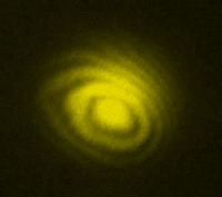 Che cosa vuol dire che sono in fase? La luce è composta di onde che, come le onde del mare, hanno un punto alto e un punto basso. Se i raggi sono in fase, vuol dire che i punti alti e i punti bassi delle due onde coincidono e, sulla lastra di rilevazione D, si formeranno dei bei cerchi chiari, dove la luce è massima alternati a cerchi più scuri come quelli nella figura sopra.