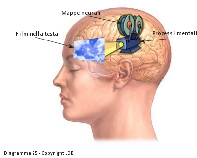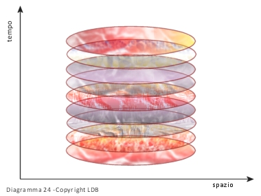 Ma noi sappiamo, ormai, che, nel continuum spaziotemporale, il tempo non scorre e che ogni configurazione delle diverse mappe neurali è eternamente esistente (vedi diagramma 24).